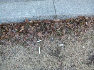 ![]() ↑↑↑↑ 幼稚園の前の道路も汚い! 西公園もタバコの吸い殻がいっぱいでした